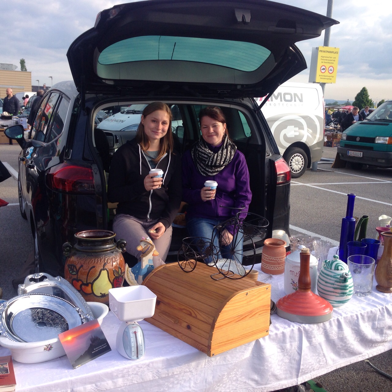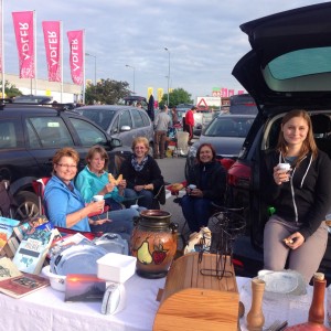 Nachbarstandler gaben mehr oder weniger sinnvolle Tipps. Bis 12 Uhr mittags plätscherte der Verkauf dahin, am Ende waren wir mit dem Erlös sehr zufrieden. Der ganze Vormittag gestaltete sich sehr lustig und kurzweilig, immer wieder kamen Bekannte vorbei – an dieser Stelle Danke an Elke H., die uns mit Kaffee und frischen Kipferl versorgte. Da wir zu fünft waren, konnte jeder auch selber durch den Flohmarkt schlendern und staunen, was es alles zu erwerben gab – von der Unterhose bis zum Rasenmäher war alles zu finden. Zum Flohmarktende waren wir uns einig, dass diese Aktion auf jeden Fall wiederholt werden muss!