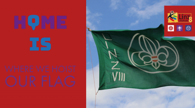 Wenn wir Pfadfinderinnen und Pfadfinder unsere Zelte aufgestellt haben oder einen anderen Platz zum Schlafen gefunden haben, dann sind wir (für kurze Zeit) an diesem Ort zu Hause. Als Zeichen dafür, dass Pfadfinderinnen und Pfadfinder an einem Ort lagern, hissen wir unsere Flagge.