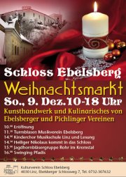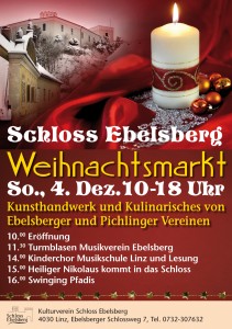 Am Sonntag, den 9. Dezember 2012 findet wieder der Weihnachtsmarkt im Schloss Ebelsberg statt. Von 10:00 bis 18:00 Uhr bietet der Markt Handwerk und Kulinarisches von Ebelsberger und Pichlinger Vereinen.
